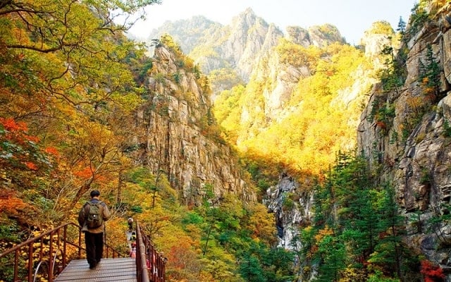 Thời điểm lý tưởng để du lịch vườn quốc gia Seoraksan đó chính là vào mùa thu, từ giữa tháng 9 đến giữa tháng 11. Trong khoảng thời gian này, du khách sẽ được chiêm ngưỡng những cảnh sắc tuyệt đẹp với những tán cây chuyển màu vàng, cam và đỏ rực rỡ, tạo nên một bức tranh thiên nhiên vô cùng ấn tượng.